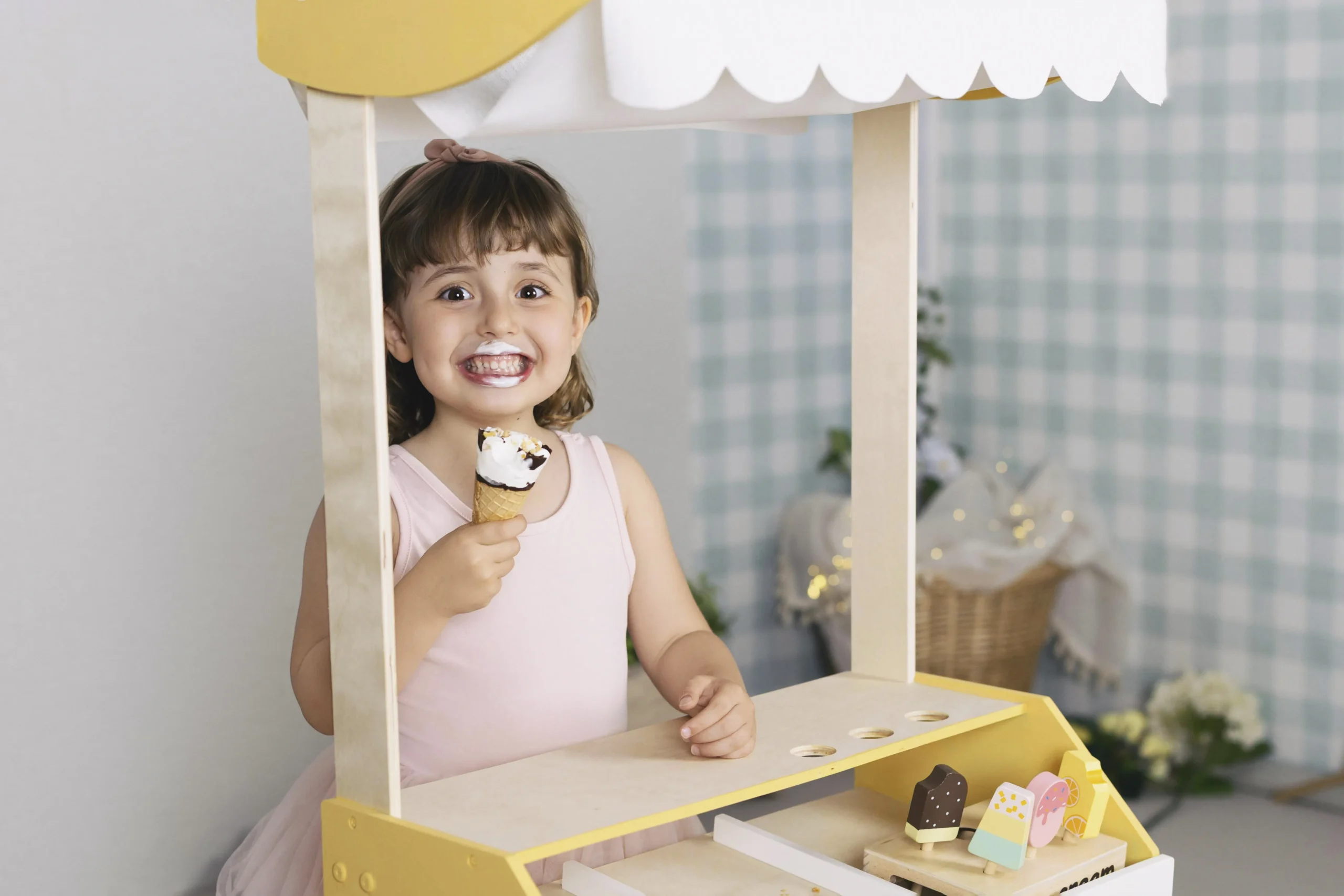 Estas sesiones pueden hacerse en estudio o en exterior. Yo me encargo de todo el atrezzo: desde banquitos de madera hasta cajitas o decorados especiales para cada edad. No necesitáis traer nada, solo venir y disfrutar.